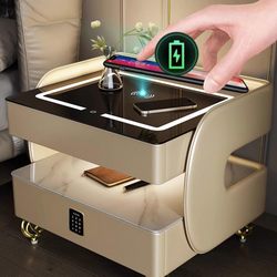 Modern Luxury MDF Wood Bedside Cabinet Smart USB Wireless Charging Drawer Entryway Storage Nightstand for Bedroom Furniture